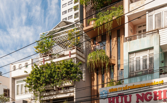 Ngôi nhà màu nâu cam, cao sáu tầng trên mảnh đất rộng gần 80m2 ở quận Bình Thạnh là ví dụ cho kiểu nhà phố đa năng trong đô thị Việt Nam. Nằm đối diện con đường lớn, đây không chỉ là nơi ở mà còn được gia chủ cho thuê.