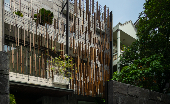 Không chỉ cây xanh, các vật liệu dùng trong công trình cũng gợi nhớ thiên nhiên như gỗ, đá xanh và đá đen.