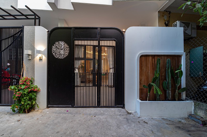 Ngôi nhà được chú ý từng chi tiết nhỏ, ngay cả mặt tiền cũng mang vẻ đẹp độc đáo với cổng sắt hoa văn và tường trang trí.