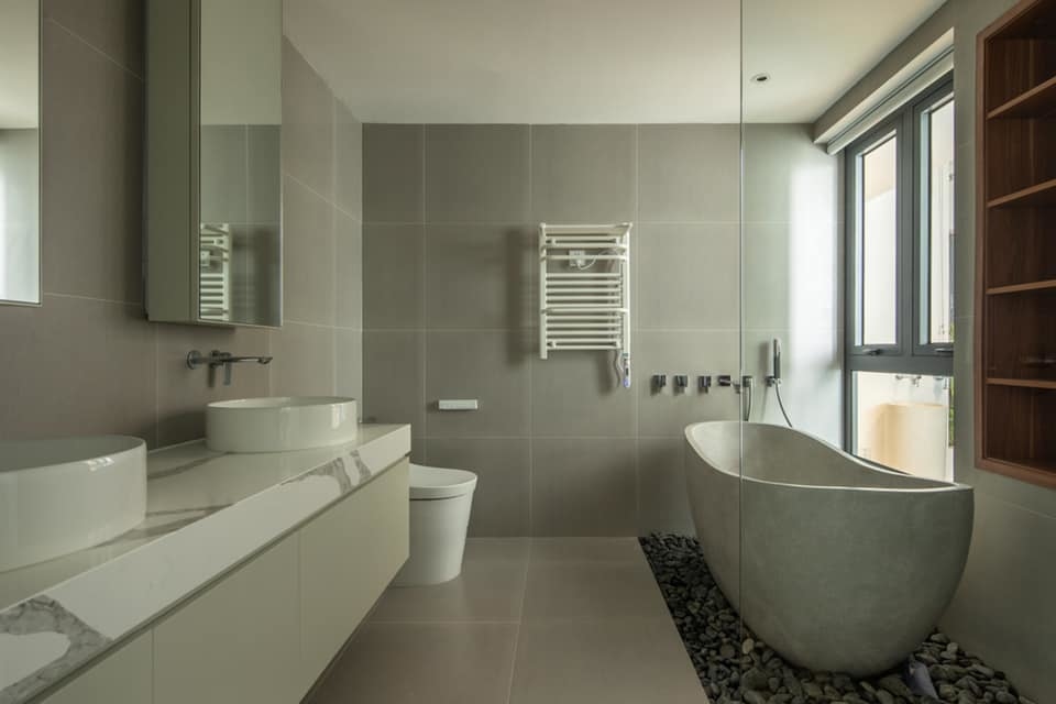 Phòng tắm cũng là nơi yêu thích của chị Hà nhờ bồn cầu thông minh và thanh sưởi khăn tắm.