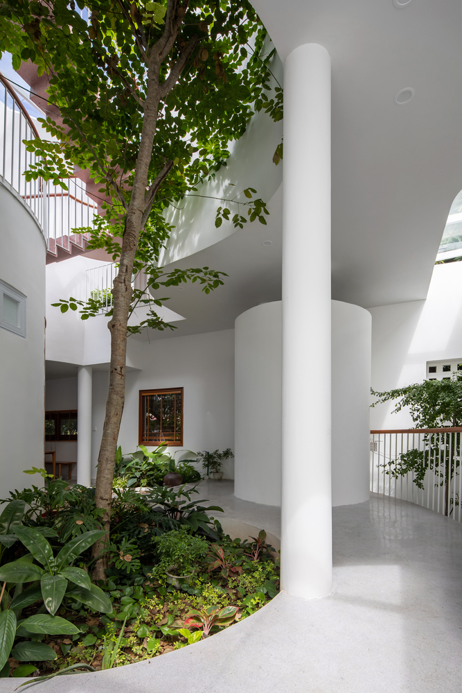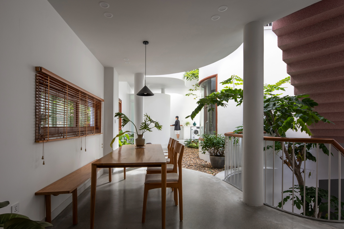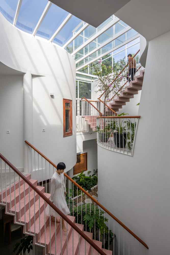 Không gian lõi uốn lượn kết nối các khu vực sinh hoạt và con người.