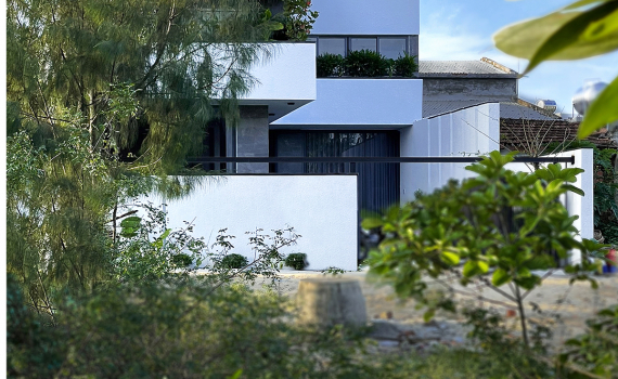 Ngôi nhà nằm giữa làng biển Bình Minh, huyện Thăng Bình, tỉnh Quảng Nam. Gia chủ là vợ chồng trẻ có con nhỏ nên yêu cầu đặt ra cho kiến trúc sư là thiết kế ngôi nhà theo tiêu chí tối giản, gần gũi thiên nhiên, có chỗ vui chơi cho trẻ.
