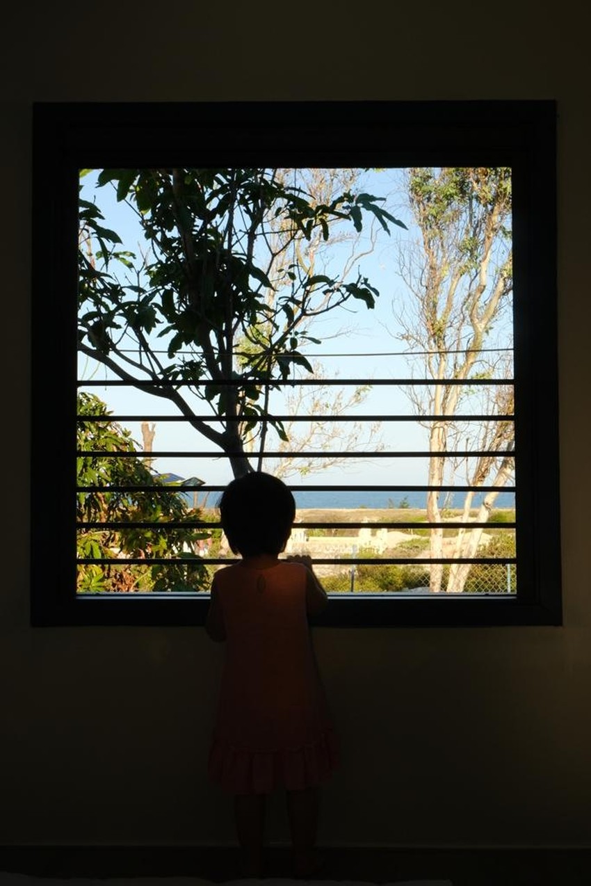 Khu vực gác xép được thiết kế tối giản với ô cửa sổ thông gió mở trực tiếp hướng nhìn ra biển, là nơi ngủ của các con khi về thăm, hoặc khách đến chơi ở lại.