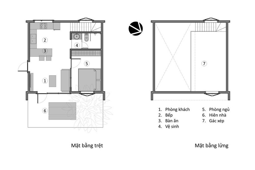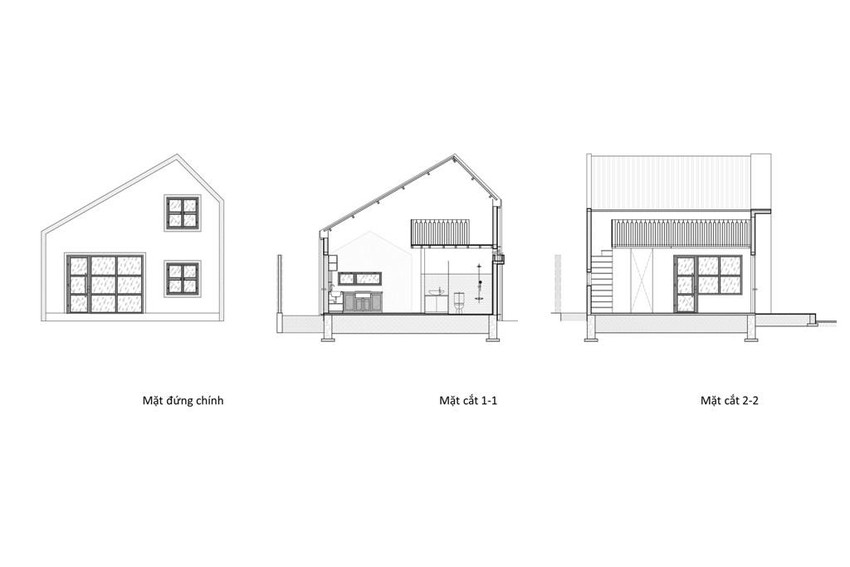 Cấu trúc công trình gói gọn với những chức năng cơ bản như phòng khách, bếp kết hợp bàn ăn, khu vệ sinh, phòng ngủ chính dành cho ba mẹ, một gác xép cho con cháu mỗi khi về nhà.