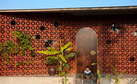 Lớp ngoài cùng làm từ gạch thông gió để mang vào nhà ánh sáng ban ngày và không khí trong lành. Gạch thông gió còn giúp mặt tiền chịu được nắng trực tiếp từ hướng Tây.