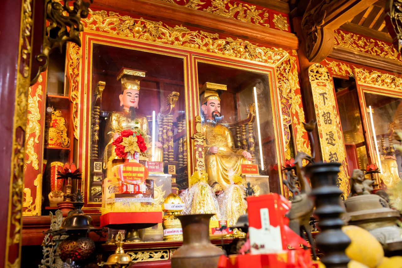 Phía sau ngôi chính điện là nhà hậu cung rộng 220 m2, nơi đặt ngai thờ, bài vị và tượng của 8 vị vua nhà Lý.
