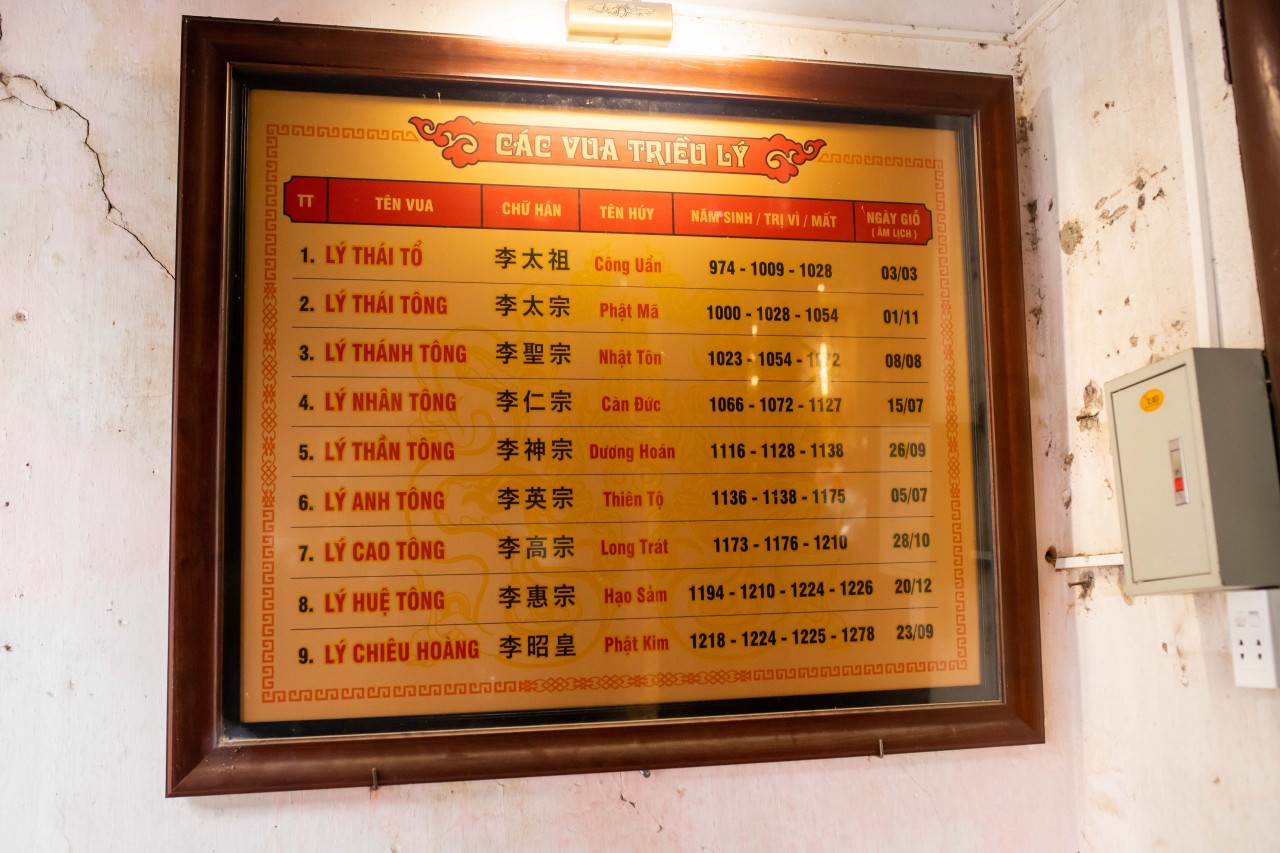 Ban thờ tự 8 vị vua thời nhà Lý.
