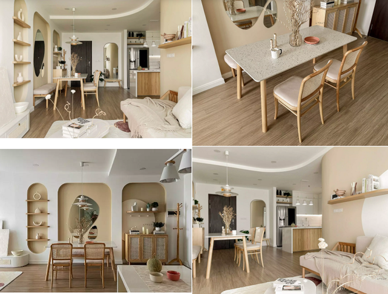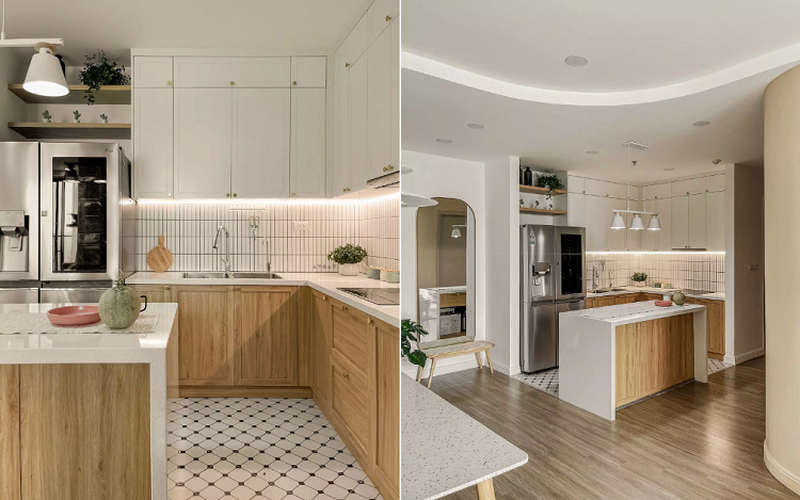 Căn hộ 75 mét vuông tone trắng và vàng gỗ khiến gia chủ bất ngờ vì đẹp hơn cả bản vẽ