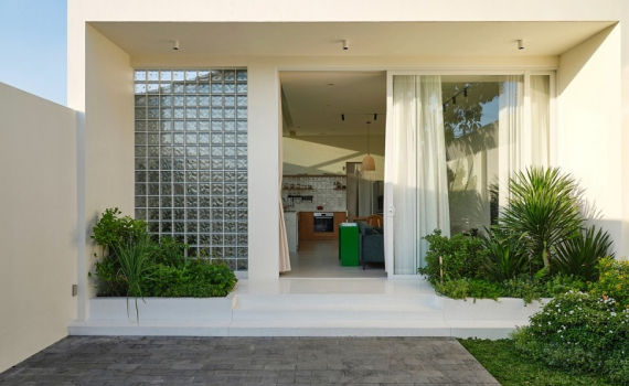 Mặt tiền của Lam house ngập tràn cây xanh, hòa quyện với thiên nhiên. Khu vực sinh hoạt mở có tầm nhìn toàn cảnh ra khu vườn xanh tươi ở sân trước, nơi có những cây hoa xinh đẹp như những loại thảo mộc nhỏ xinh trong khu vườn nhiệt đới.