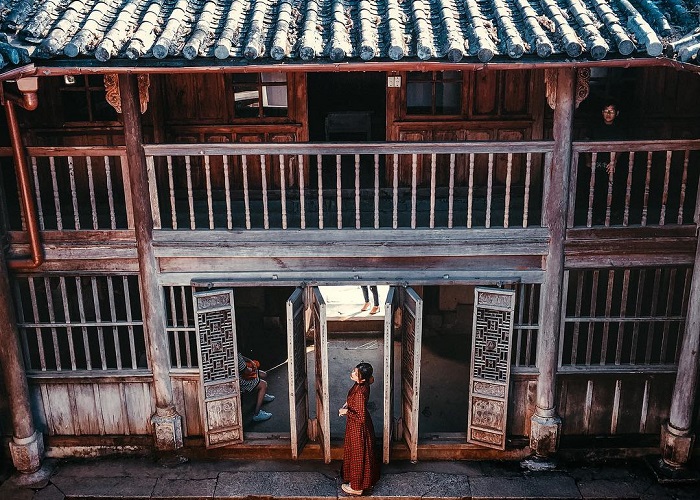 Ngói đất nung lợp âm dương kết hợp đá xanh. Bên trong là nội thất cầu kỳ, tinh xảo.