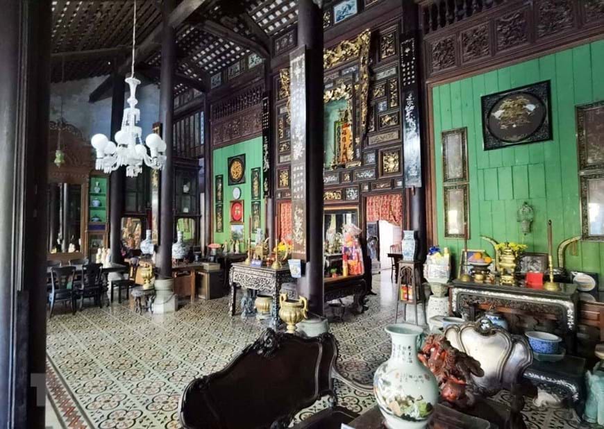 Nhà trước gồm 5 gian là nơi tiếp khách trong những nghi lễ quan trọng, được trang trí theo phong cách Tây Âu.