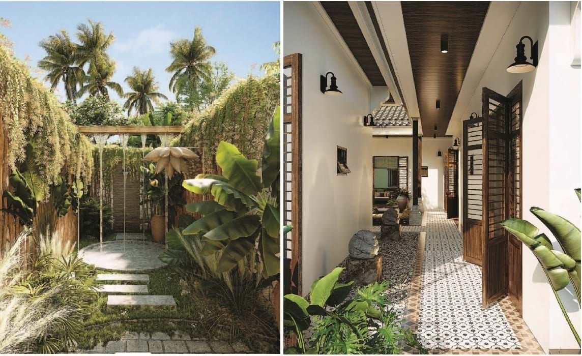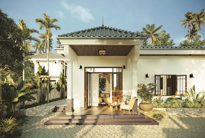 Lấy cảm hứng từ những hình ảnh quen thuộc của người Việt xưa, nơi sân vườn có những đứa trẻ nô đùa, ông bà ngồi nhâm nhi ly trà, ba mẹ trồng rau tưới cây… cả nhà quây quần vui vẻ bên nhau. Kiến trúc sư thiết kế mong muốn mang đến những giá trị tình cảm, hạnh phúc cho khách hàng với một không gian sống trọn vẹn, đủ đầy.