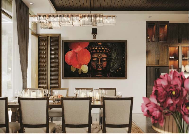 Bức tranh Đức Phật hiền từ được điểm thêm giúp gia đình định tâm an trú trong hiện tại, bên nhau trọn vẹn từng phút giây. Để có những cảm thụ tinh tế và sâu sắc, đòi hỏi người kiến trúc sư không chỉ có gu thẩm mỹ và sự sáng tạo mà còn cần có kiến thức chuyên môn, kinh nghiệm và trải nghiệm.