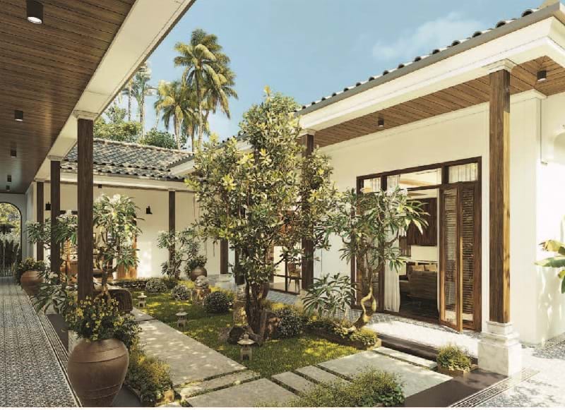 Kiến trúc này có sự rộng rãi và tối đa được diện tích nhờ vào thiết kế hướng mọi không gian vào sân trong. Mỗi khối nhà được bố trí riêng biệt mang đến sự riêng tư cho các thành viên trong gia đình mà vẫn giữ được sự kết nối.