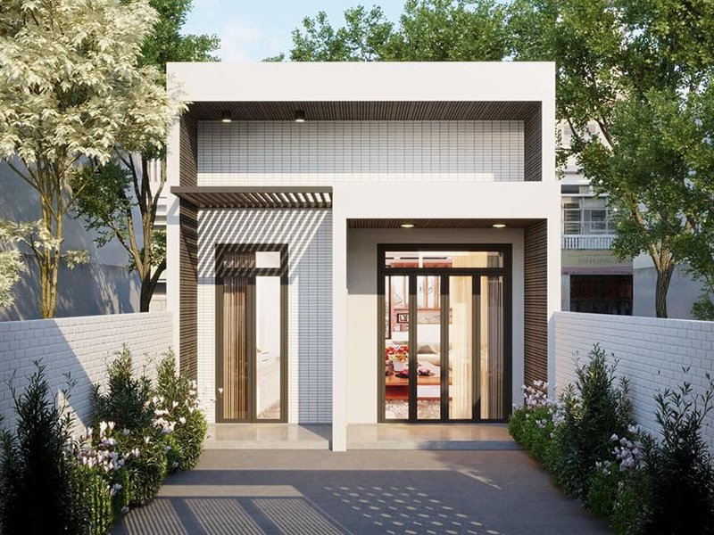 Mẫu nhà cấp 4 sử dụng hệ cửa kính trong suốt, giúp lấy ánh sáng tối đa.