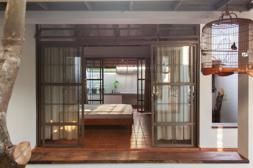 Phòng ngủ cũng được bố trí dưới tán cây 20 năm tuổi, mát mẻ và thoáng đãng.