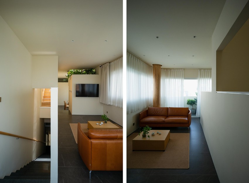 Kiến trúc sư tổ chức trục giao thông trải dài theo một phía giáp với công trình liền kề.