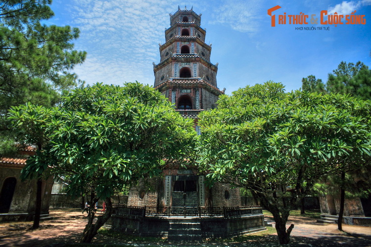 2. Gắn liền với chùa Thiên Mụ, tháp Phước Duyên là một biểu tượng nổi tiếng của Cố đô Huế kể từ thời nhà Nguyễn đến nay. Theo sử sách, tháp được xây dựng ở phía trước chùa Thiên Mụ vào năm 1844, nhân ngày lễ bát tuần của Thái Hoàng Thái Hậu Nhân Tuyên Tử Khánh.