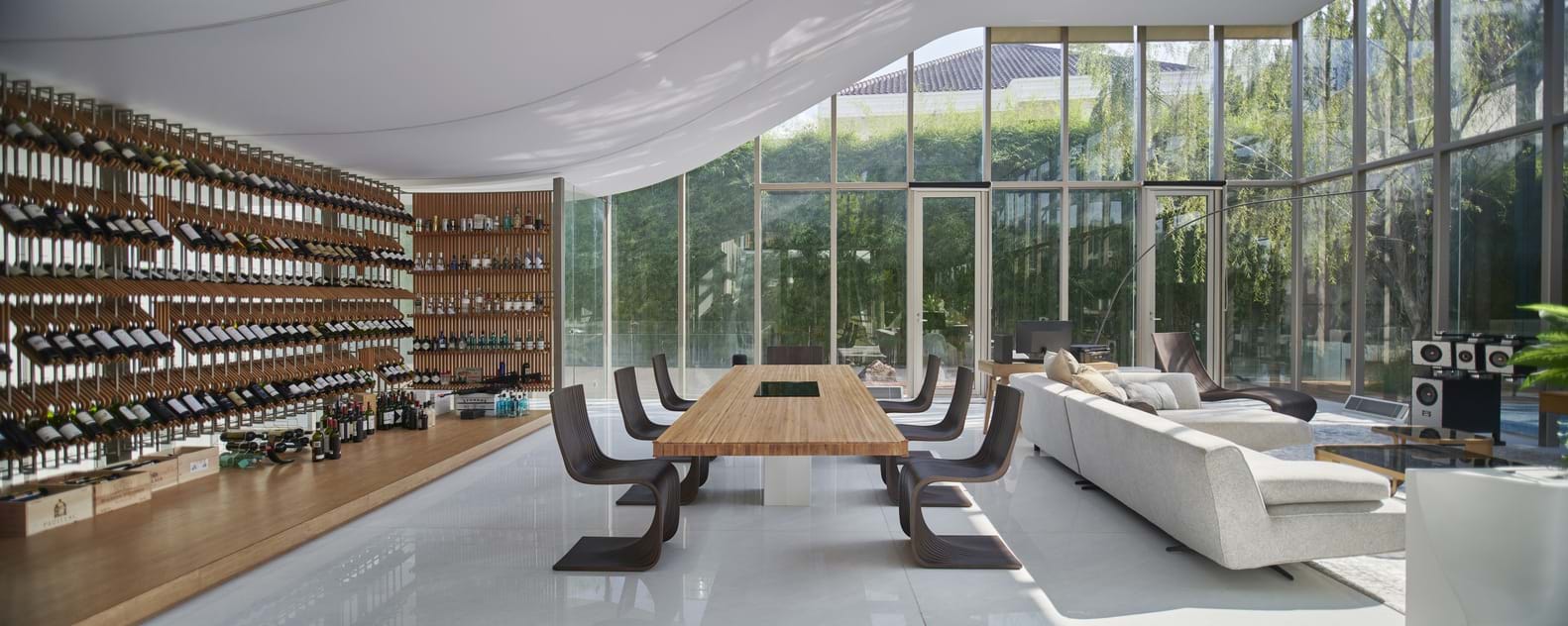 Để tạo sự đồng nhất, các nội thất bên trong cũng được lựa chọn và thiết kế theo hình dáng 'uốn lượn', đạo đáo đúng với ngôn ngữ của tương lai.