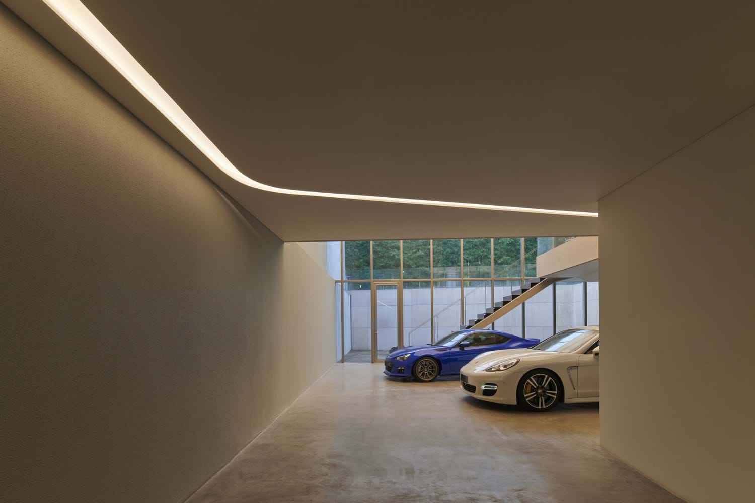 Những dải đèn led vàng ốp trên trần cũng là một trong những đường nét hướng đến phong cách tương lai như mong muốn của gia chủ.