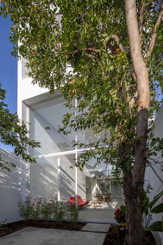 Sân sau (5 m x 5,3 m) là không gian mở, giúp tòa nhà đón gió mùa hè từ phía đông.