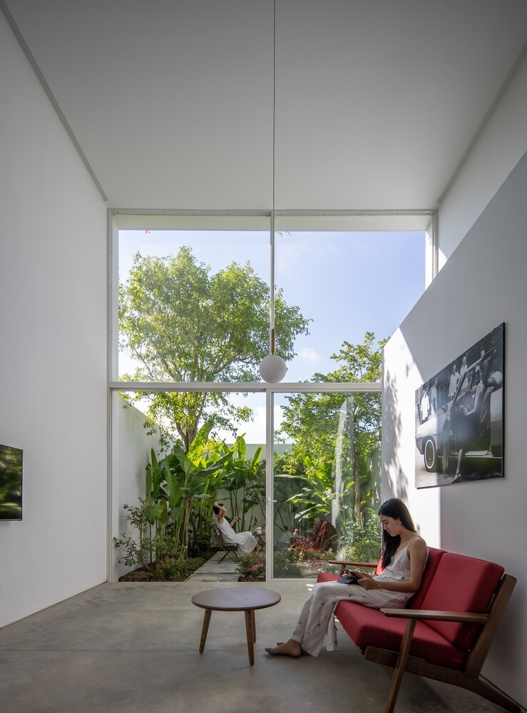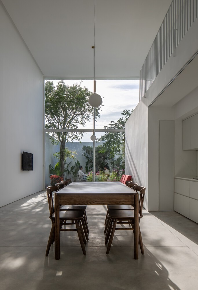 Thứ hai là mọi không gian đều kết nối với nhau, đón nhận được ánh sáng, không khí trong lành bên ngoài, có không gian xanh và thông gió tự nhiên.