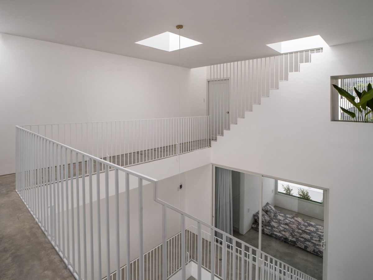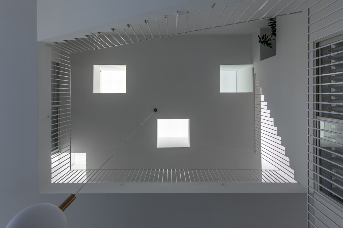 Nhà có các hành lang dài như sàn catwalk bao quanh giếng trời, giúp nữ chủ nhân thỏa đam mê thời trang.