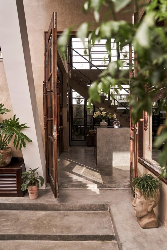 Để đạt được độ hoàn thiện tốt nhất có thể, KTS đã sử dụng lại những viên gạch cũ đã bị vứt bỏ từ những ngôi nhà cũ, điều này giúp mang lại màu sắc của thời gian cho ngôi nhà và qua đó giúp chủ nhân lớn tuổi của ngôi nhà cảm thấy thân thuộc ngay khi chuyển đến.