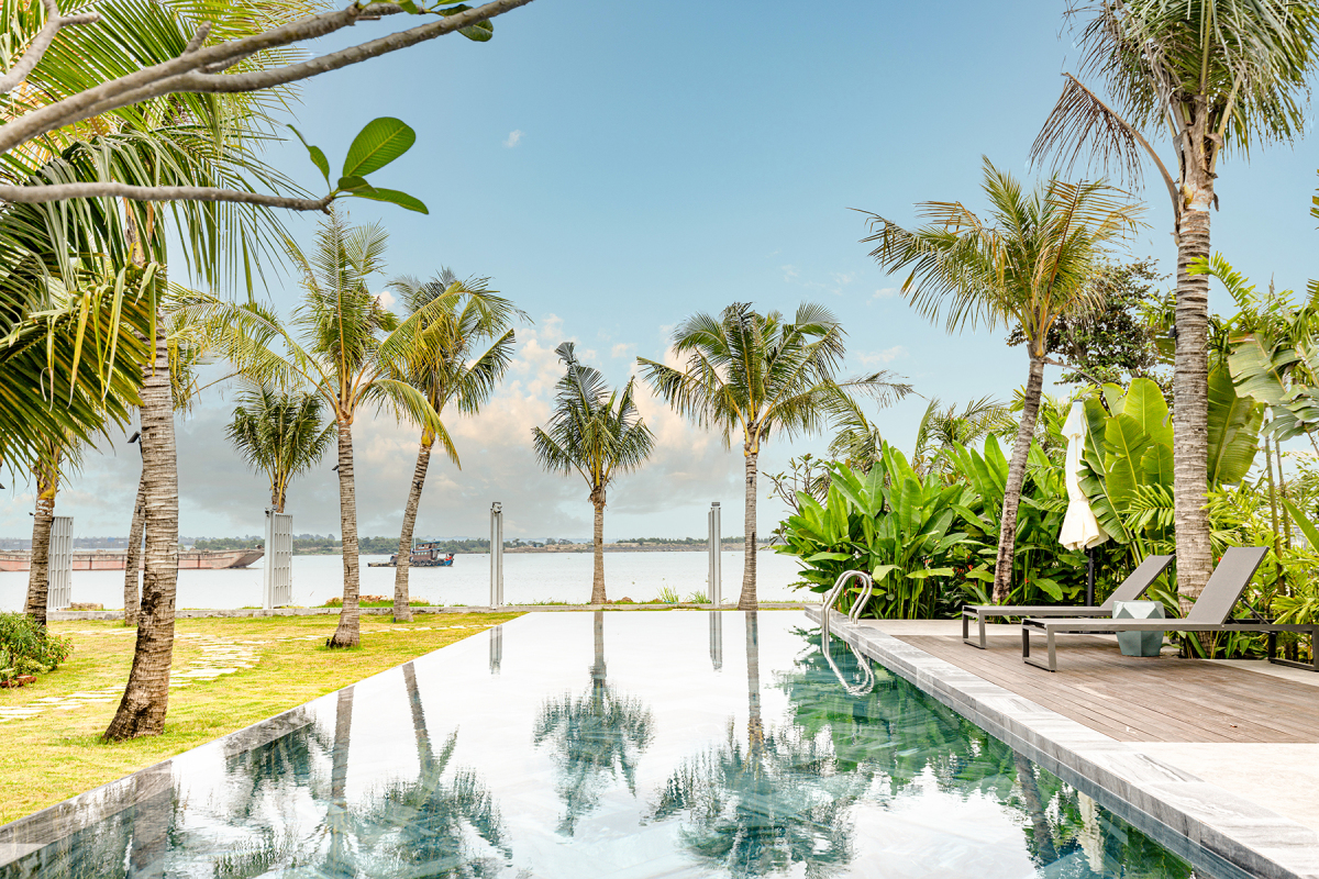 Hồ bơi vô cực rộng 100 m2 tạo cảm giác bể kéo dài không có điểm dừng. Chiếc hồ bơi đã phá vỡ quan điểm chỉ có bốn góc cạnh trong một không gian chật hẹp, mà hướng tới không gian rộng lớn hơn, nơi con người hòa quyện vào cùng thiên nhiên.