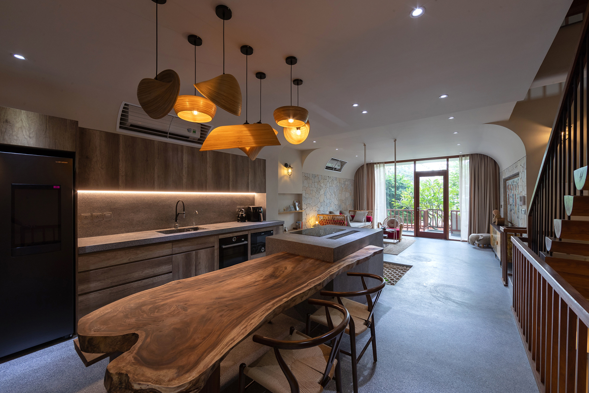 Từ yêu cầu này, phong cách chủ đạo mà kiến trúc sư hướng tới là sự hiện đại, làm nổi bật nét thô mộc của vật liệu cũng như gần gũi thiên nhiên.