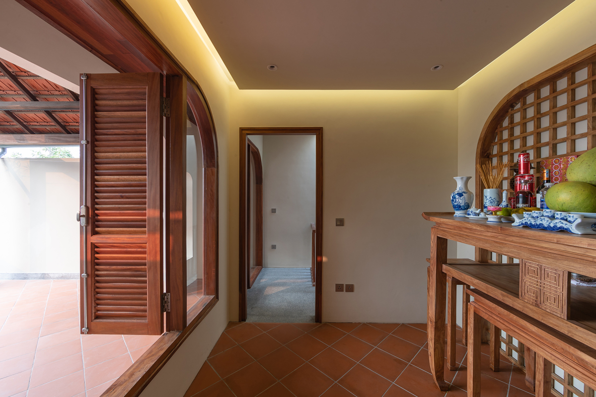 Để giữ được vẻ thâm trầm vốn có của nhà cũ, kiến trúc sư đã sử dụng những vật liệu truyền thống như cửa chớp, mái ngói đỏ... làm cửa chính, cửa sổ, mái hiên cho công trình.