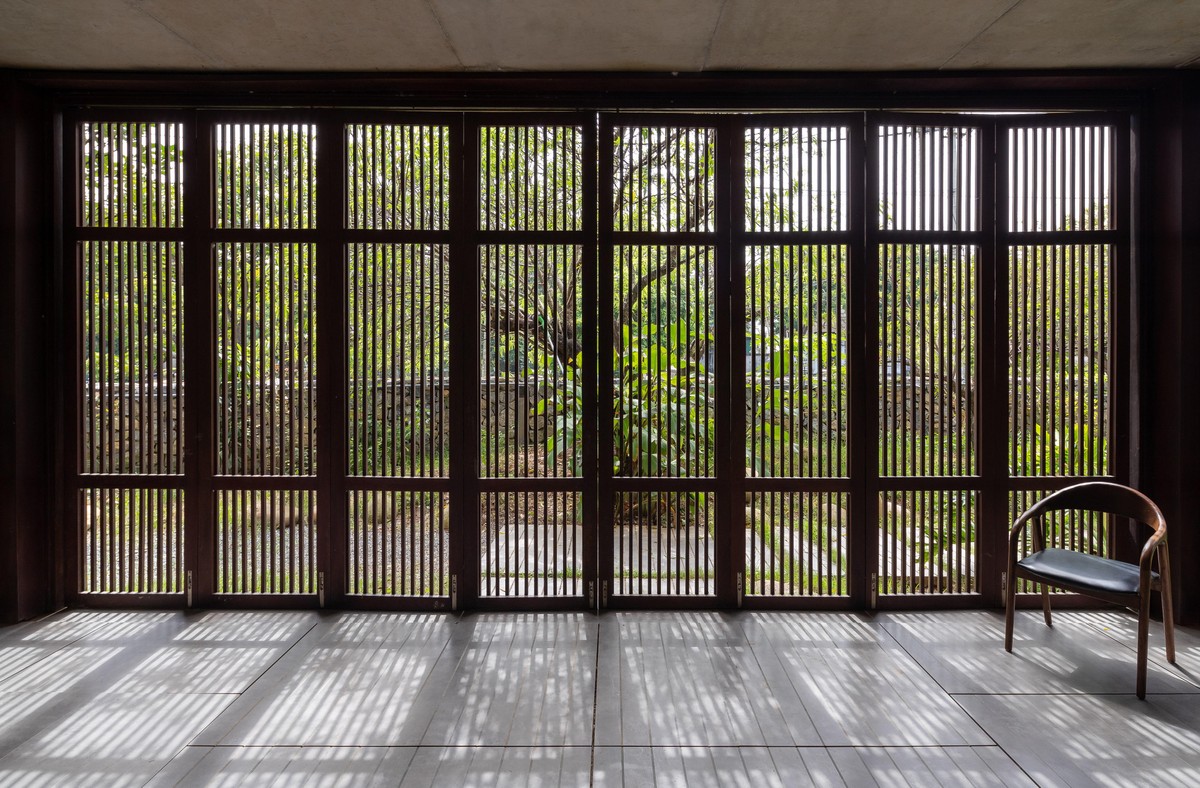 Những hàng hiên, mái ngói, hệ cửa lam hay những khoảng trống được tạo ra đã giúp cho công trình tránh được tác động trực tiếp của nắng hướng Tây.
