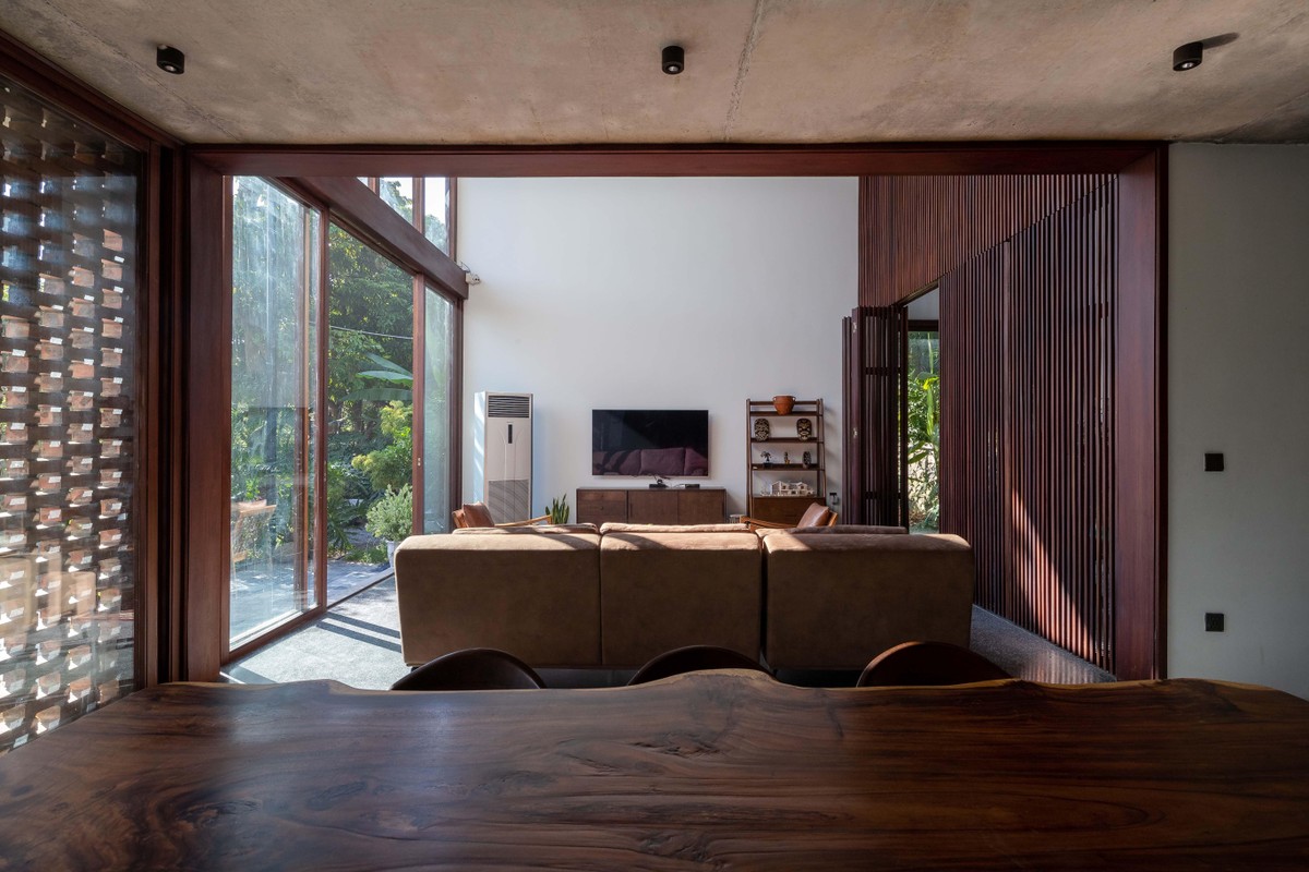 Toàn bộ những khoảng trống đó và hành lang kết nối tạo ra một chuỗi không gian thú vị, kết nối được các không gian với mức độ riêng tư khác nhau.