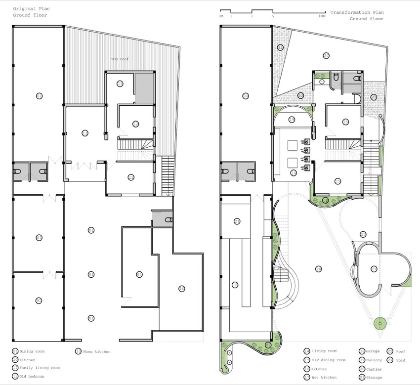 Ngôi nhà được cải tạo từ một ngôi nhà cũ kết hợp với một nhà hàng nhỏ.
