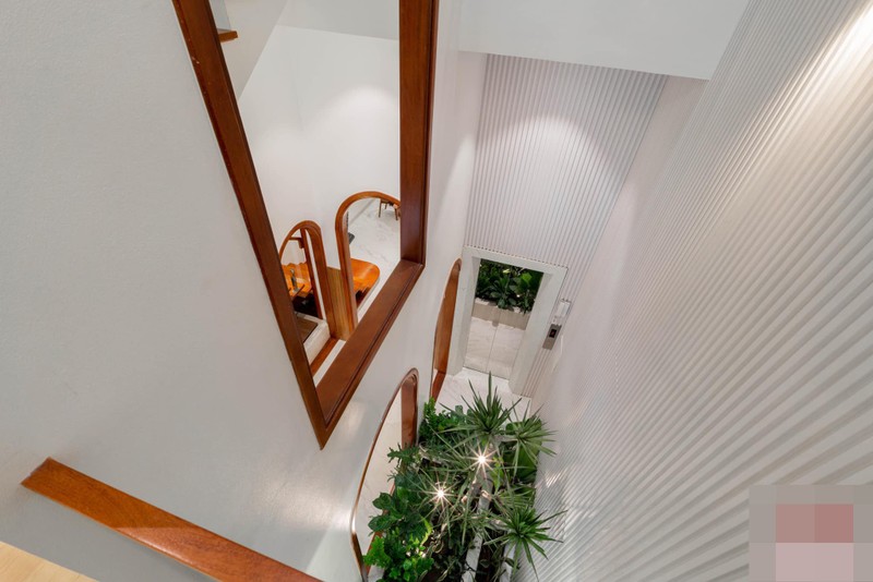 Khoảng thông tầng nhìn từ giếng trời và tầng 2 xuống.