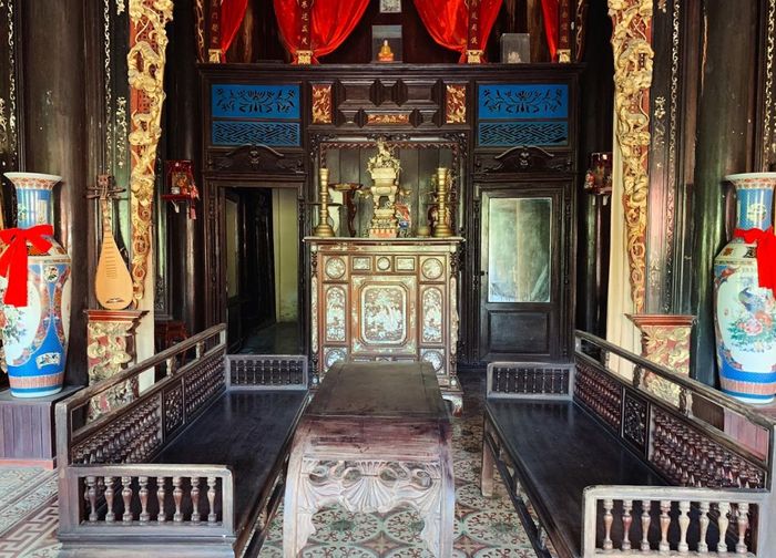 Nhà được chia làm ba phần: nhà trước, nhà giữa và nhà sau. Nhà trước và nhà giữa là khoảng trống rộng, nơi gia chủ đặt bàn ghế tiếp khách. Ảnh: Mia