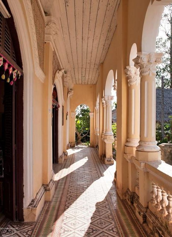 Hành lang của ngôi nhà với hàng cột mang dáng dấp kiến trúc Châu Âu thời kỳ Phục Hưng. Ảnh: BaoanhVietNam
