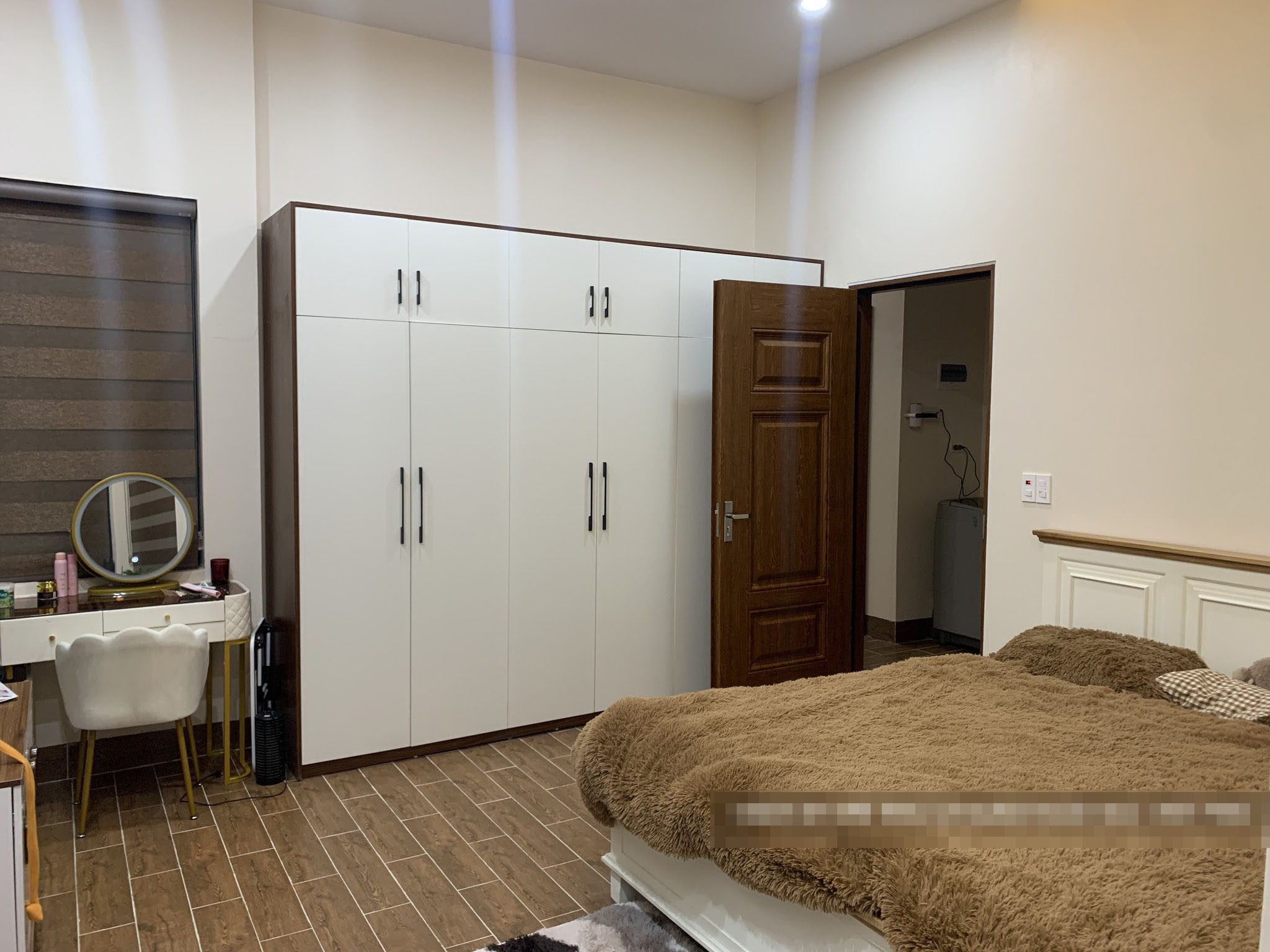 Phòng ngủ tối giản, chỉ có giường và bàn trang điểm, tủ quần áo nhằm tối ưu không gian sử dụng, tạo khoảng không thoáng đãng khi nghỉ ngơi.