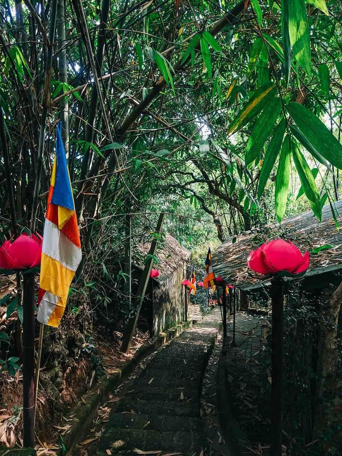 Từ chân núi, du khách sẽ trải qua 239 bậc lát đá ong thì sẽ đến đỉnh núi và cổng chùa.