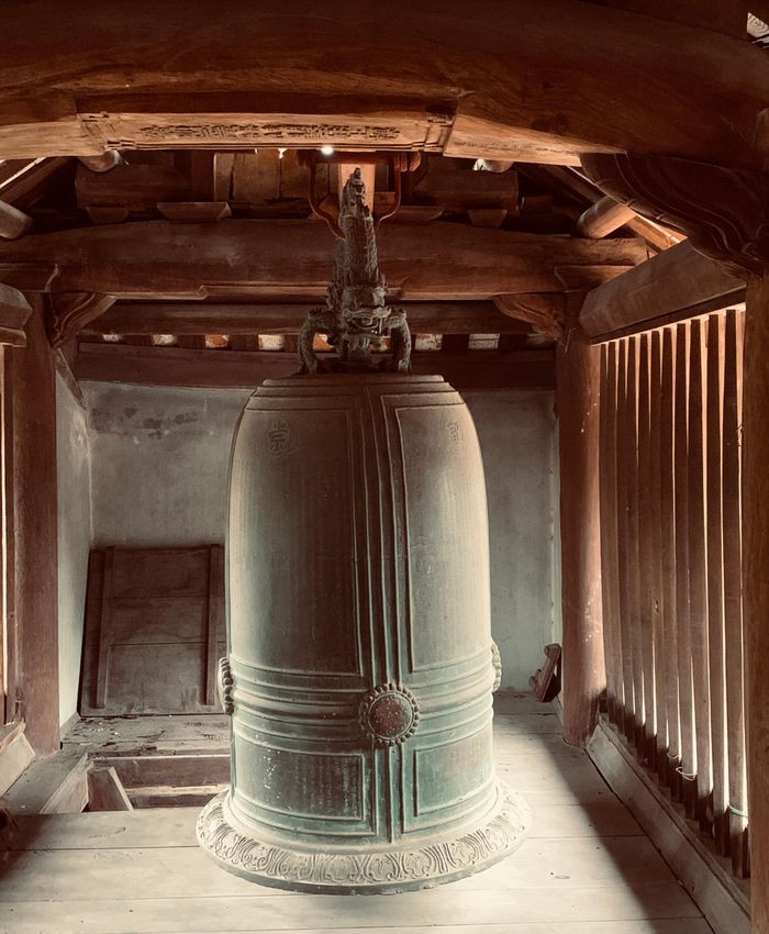 Tầng trên của Tam quan treo quả chuông cổ đúc từ đời Lê (năm 1745)...