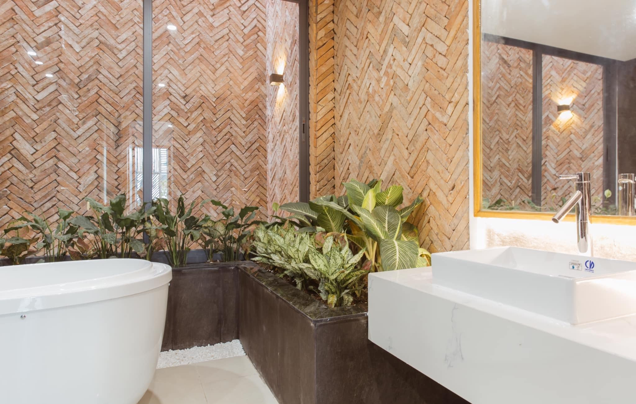 Góc phòng tắm chill, rất sáng và khô ráo nhờ có cửa thông ra giếng trời, gió liên tục đối lưu.