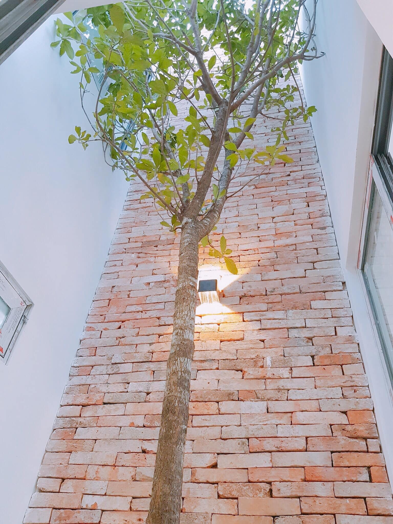 Giếng trời ốp gạch xương cá nhằm giảm thiểu tiếng ồn khi hút gió xuống.