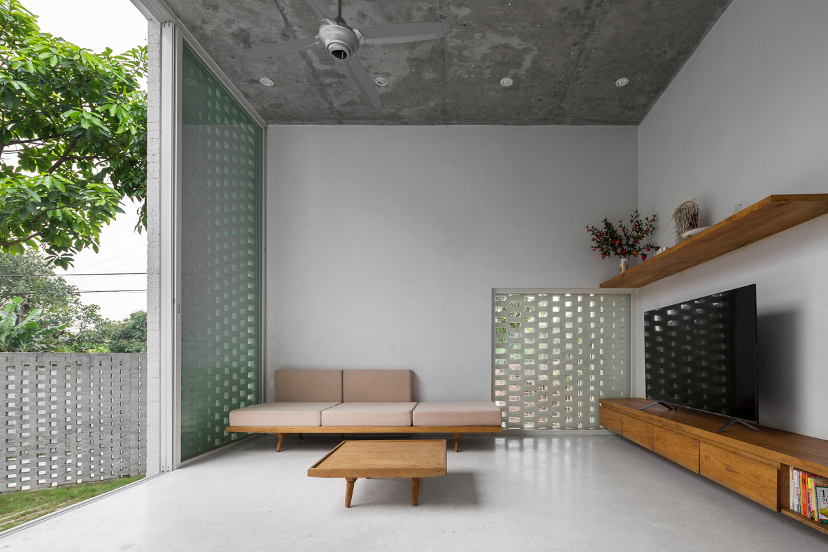 Mảng tường gạch đặc rỗng tạo sự riêng tư nhất định, còn hạn chế ánh nắng chiếu trực tiếp vào bên trong, đồng thời tạo tính thẩm mỹ cao cho công trình.