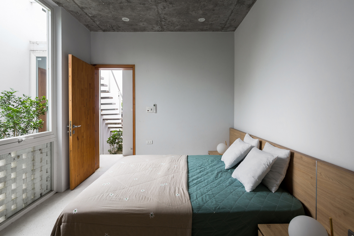 Ba phòng ngủ đều có hệ kính lớn, có cửa mở ra các hướng khác nhau nên trong trường hợp không kéo rèm vẫn có sự riêng tư nhất định.