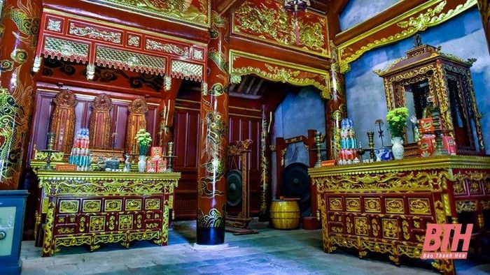 Tiền điện có 5 ban thờ, ở chính giữa là ban thờ hội đồng các quan, hai bên thờ các vương, công triều nhà Hậu Lê.