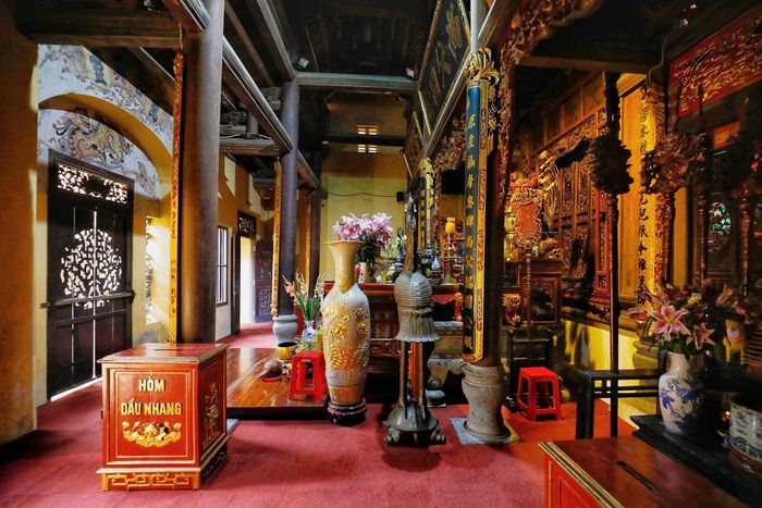 Tiền đường là nơi sinh hoạt tín ngưỡng của cộng đồng dân chúng, nơi đó có treo các sắc phong và những hoành phi câu đối với ý nghĩa nguyên bản, phía trước có các hàng chữ tượng hình mang ý nghĩa bí ẩn.