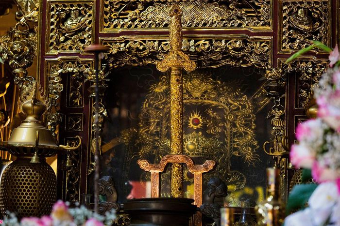 Bên trong đền còn lưu trữ hàng trăm cổ vật có giá trị nghệ thuật cao và phong phú về thể loại như tượng thờ, bát bửu, 38 đạo sắc phong, hoành phi, câu đối, đại tự, ngai thờ, khám thờ, lục bình, bát hương, nghê đá, rùa đá… Đặc biệt thanh kiếm bạc vỏ đồi mồi có từ thời Đức Thánh Trần truyền lại hàng năm được đem ra lau chùi để bảo quản.