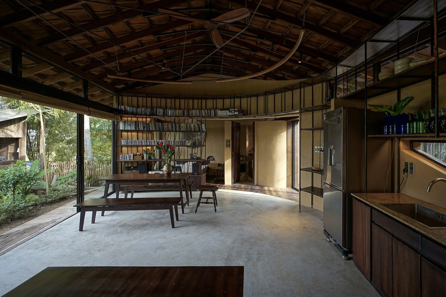 Không gian chung của ngôi nhà mở hoàn toàn ra hiên và vườn - nơi diễn ra hầu hết các hoạt động trong ngày của gia chủ.