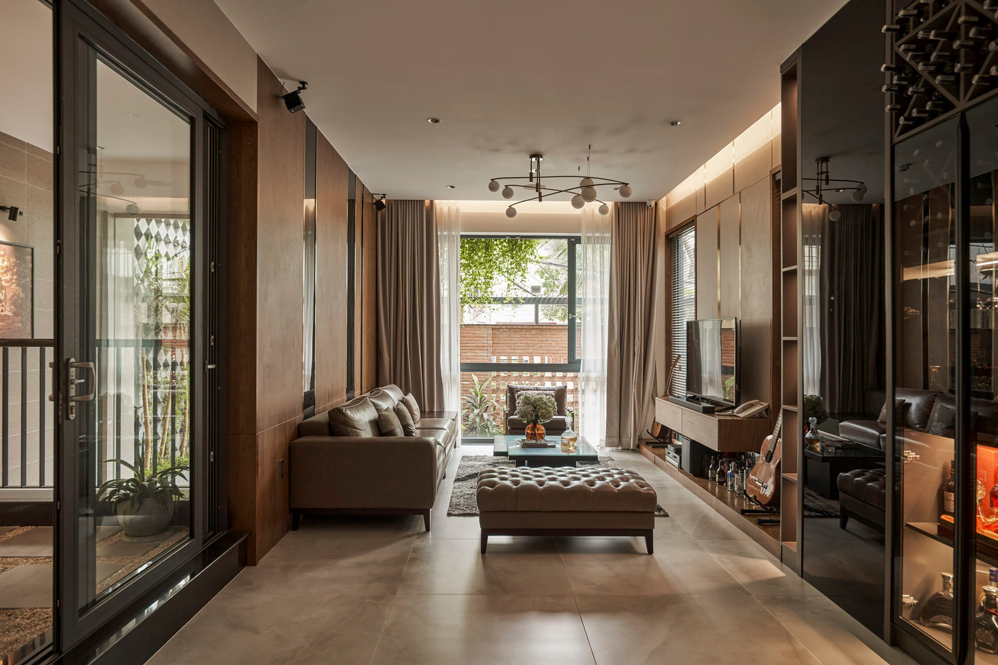 Không gian tiếp khách và sinh hoạt chung, hướng ra ngoài thiên nhiên mát mẻ.