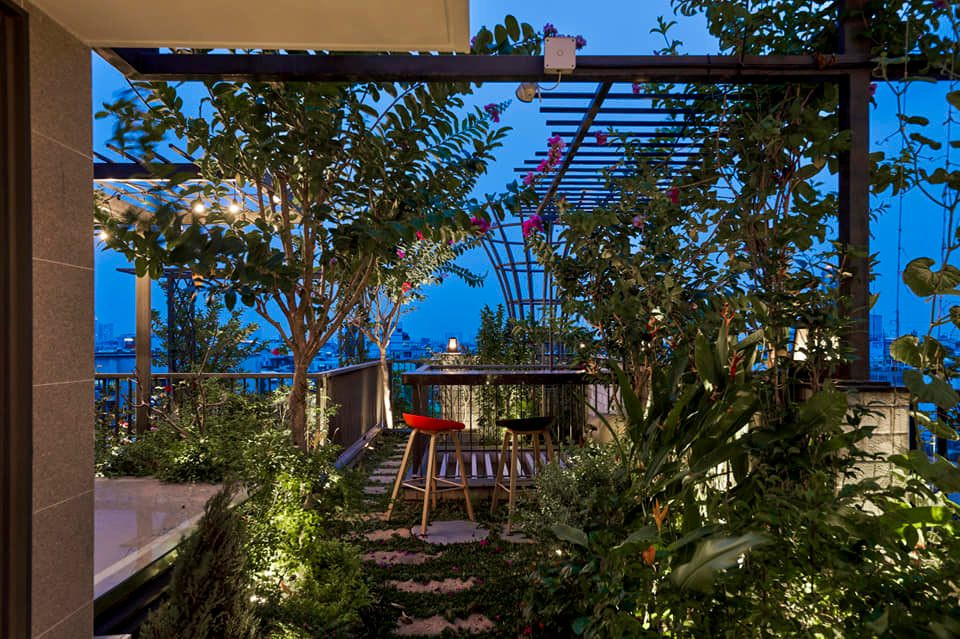 "Khu rừng nhiệt đới" trên sân thượng có cả góc thư giãn, đọc sách, ăn uống cho đại gia đình.